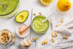 - 1 abacate sem caroço, descascado, cortado em cubos