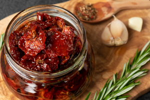 Coloque os tomates, os tomates secos, o vinho tinto e a pimenta vermelha triturada no Jarra Total Crushing.